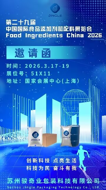 Suzhou Jingle Packaging Technology Co., Ltd. er glade for å kunngjøre sin deltakelse i det kommende Matingredienser Kina 2026 utstilling. Arrangementet finner sted fra kl 17. til 19. mars 2026 ved Nasjonalt utstillings- og konferansesenter (Shanghai) . Besøkende er velkommen til å møte selskapets ekspertteam kl Stand 51X11 å utforske omfattende emballasjeløsninger og diskutere potensielle samarbeid.
